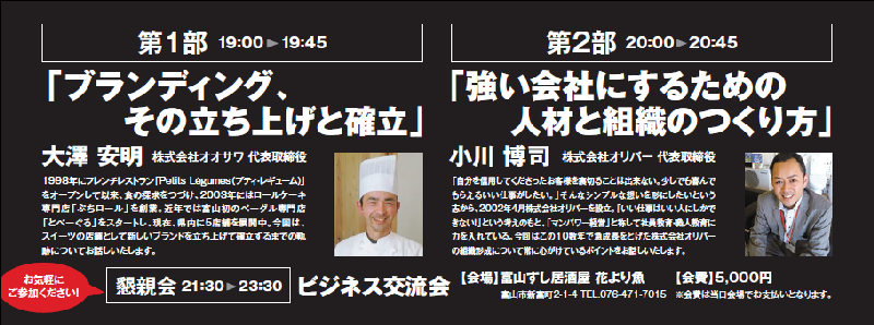 今回の富山本物研究所は、株式会社佳論の辰巳明弘先生をお招きして、「輝く自分ブランドの創造」というテーマでセミナーを開催しました。