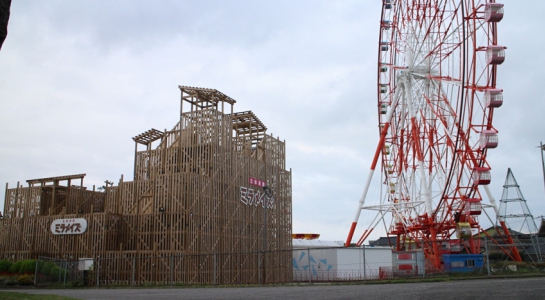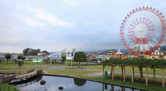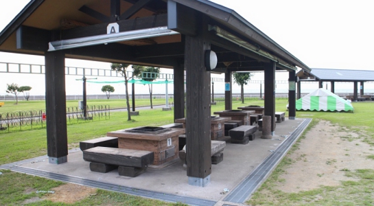 隣のアトラクションも楽しみながら、屋根付きのバーベキュー場で、